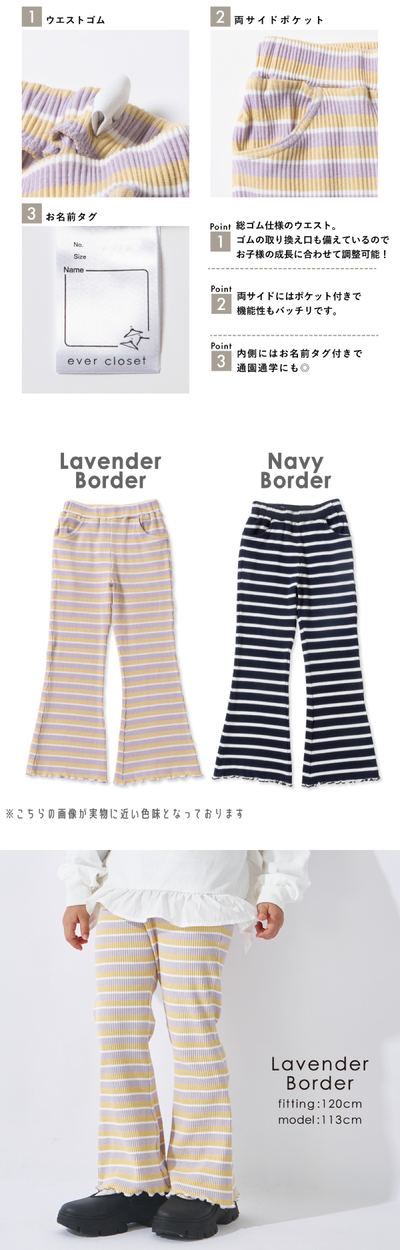 90 100 110 120 130 140 150 通園通学 入園入学 普段使い 普段着 お出かけ 遠足 旅行 帰省 修学旅行 プレゼント 誕生日 school 綿 めん コットン リブ ボトムス ズボン 長ズボン ロングパンツ フレア ラクチン 楽ちん らくらく ゆったり ゆるパン 伸びる イージーパンツ ストレッチ 美脚 美脚効果 おしゃれ お洒落 オシャレ かわいい 可愛い カワイイ かっこいい カッコいい カッコイイ カジュアル プチプラ ぷちぷら ゆったり お揃い 友達 友だち 伸縮性 メロウ メロウ裾 ガーリー ボーダー ボーダー柄 ウエストゴム ポケット ラベンダー ネイビー 紫 紺 春夏物 26SS 子供服 こどもふく キッズ ベビー 通園着 通学着 保育園着 女の子 女児 ガールズ 幼稚園 保育園 小学生 小学校 エバークローゼット エバクロ ever closet