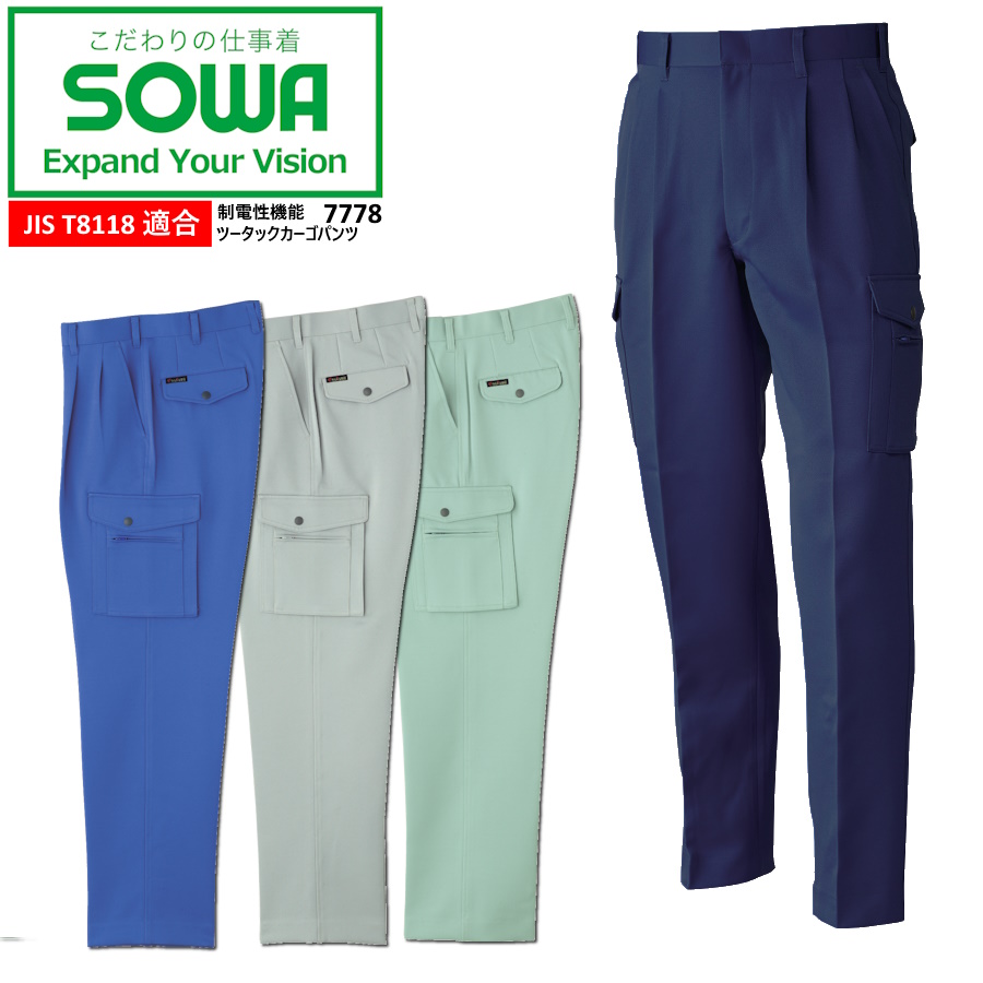 | 商品説明 | 桑和 SOWA 7778 ツータックカーゴパンツ 在庫限り ※セットアップできる長袖ブルゾンは別売りです 不快な静電気の発生を抑制する機能性ワークパンツ。 定番のワーキングウェア。 ■JIS帯電防止規格 T8118適合、不快な静電気の帯電を防止する導電性繊維を使用 ■伸縮性抜群のストレッチ素材で動きが楽。 ■シワになりにくく、簡単なアイロンがけもしくはノーアイロンでOK。 ■2タイプの長袖ブルゾンと上下セットアップできる。 ・帯電防止 (JIS T8118):常に効率よく放電するよう導電糸が縫い込まれていて電気の通り道を良くしています。 ・ゴミや埃が発生しにくい低発塵機能 ・ポケット仕様:右後ろのみフラップ付ポケット |