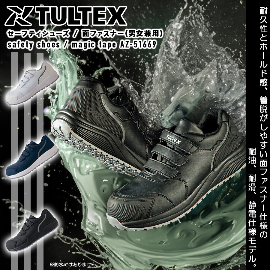 | 商品説明 | TULTEX タルテックス AZ-51668 セーフティシューズ 面ファスナー 耐滑・耐油・静電機能と安全面にも配慮した独自の高機能ソールを採用。 オリジナルトゥーガードとヒールカウンターによる耐久性は抜群です。 面ファスナー仕様で安定感があり、靴紐をひっかける心配がなく安全性が向上します。 反射材の装備で夜間、暗所での作業に配慮、視認性が向上します。 運送業・建築業・製造業・工場など幅広い作業に対応します。 ■ヒールカウンター かかとの保護とホールド感の向上 ■トゥーガード 衝撃や摩耗による傷や破れからつま先を保護 ■サイド反射材 暗所での安全性を配慮した反射材をサイドに装備 |