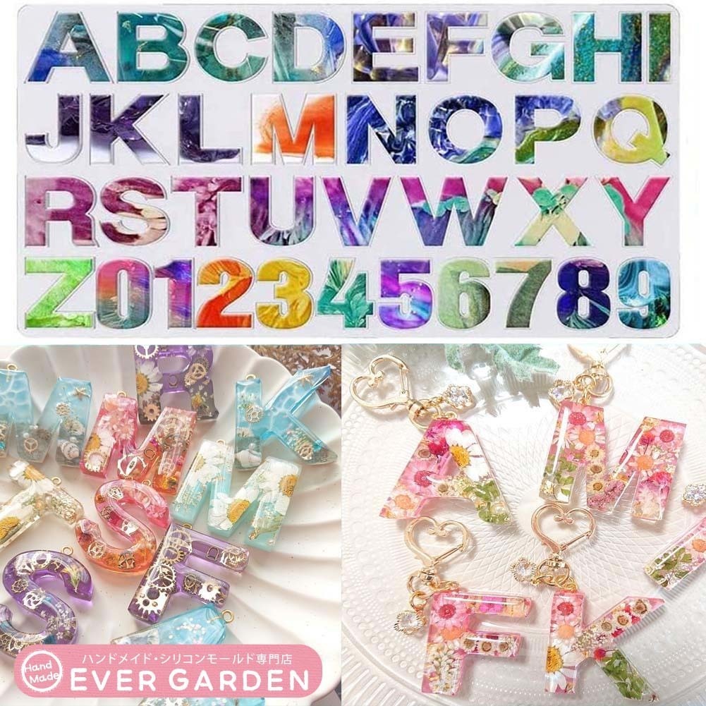【Ever garden】 レジン アルファベット 数字 英字 シリコンモールド ネックレス アクセサリー パーツ 作成 UVレジン エポキシ樹脂 樹脂粘土 型 抜き型 キット 道具 【オススメ】 シリコン 型 レジン