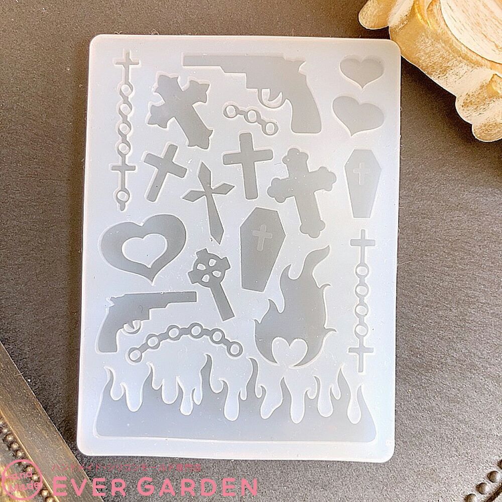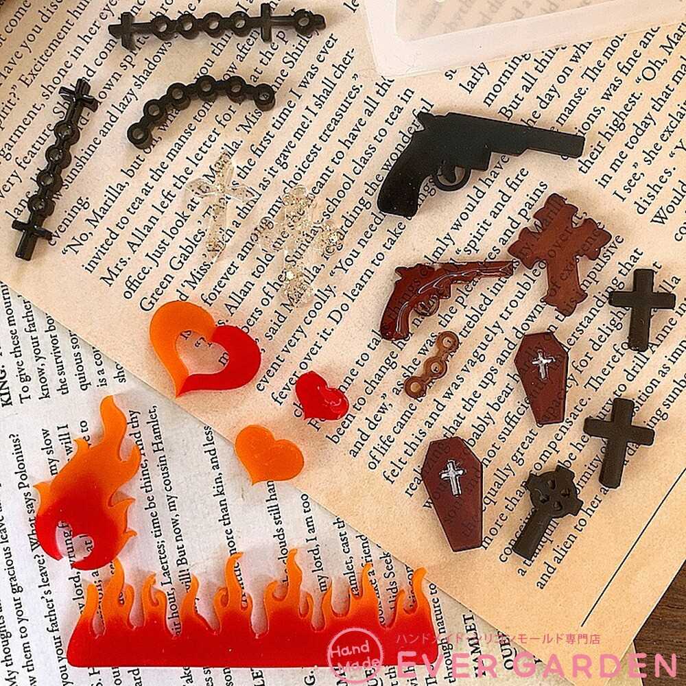 デコパーツ ピストル ハート クロス 炎 シリコンモールド 推し活 レジン オタ活 トレカ デコ パーツ デコレジン アクセサリー イヤリング ピアス