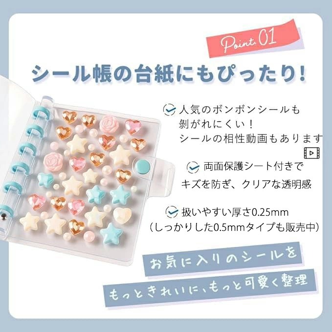 剥がれやすいシールもぴったり固定できるので、シールコレクションの保存にも最適です。