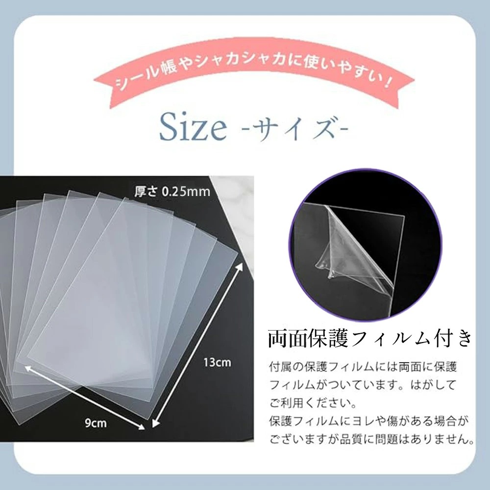シール帳台紙に最適 ppシート 30枚 セット両面保護シート付き A7 9×13cm 厚さ0.25mm 透明 フィルム シャカシャカ シリコンモールド シール帳