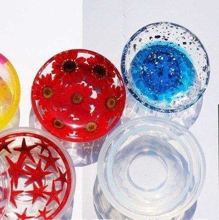 UVレジン、エポキシ樹脂、樹脂粘土などに ご利用いただけるシリコンモールドです。お皿がつくれるシリコンモールドです。商品内容 上蓋シリコン型(穴あき)と土台シリコン型 ※2つを組み合わせて使用します