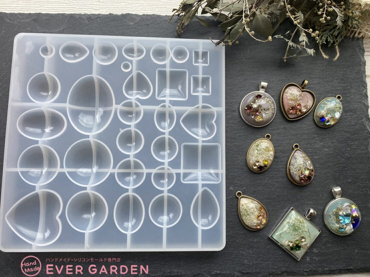 シリコンモールド レジン ミール皿 30個付き 鏡面仕上 アクセサリー パーツ 作成 ネックレス イヤリング ピアス ペンダント キーホルダー シリコン型 型 キット