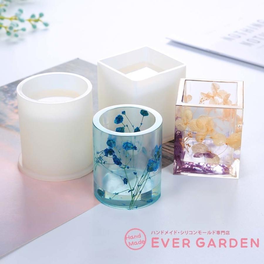 ハレジン 小物入れ 正方形 長方形 丸 円柱 シリコンモールド ネックレス ピアス アクセサリー パーツ UVレジン オルゴナイト エポキシ樹脂(円柱・正方形2個セット)