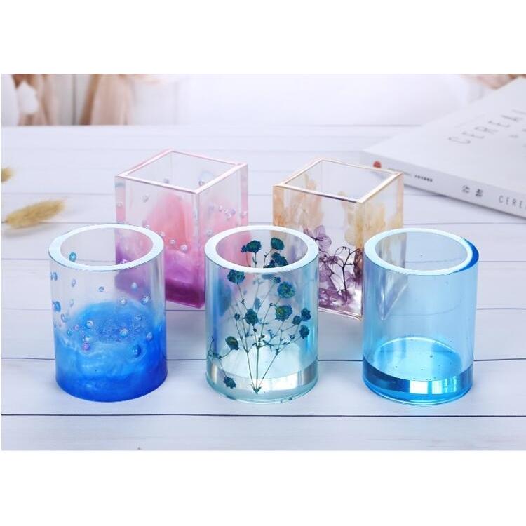レジン 小物入れ 正方形 長方形 丸 円柱 シリコンモールド ネックレス ピアス アクセサリー パーツ UVレジン オルゴナイト エポキシ樹脂 円柱・正方形2個セット)