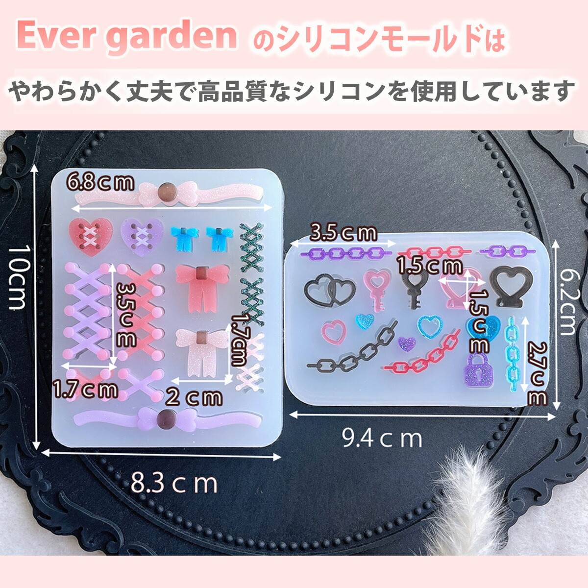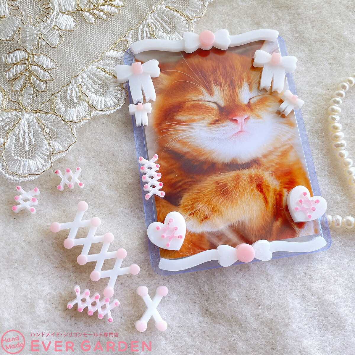デコパーツ 2枚セット シリコンモールド トレカデコ リボン チェーン 鍵 ハート レジン アクセサリー パーツ キーホルダー シャカシャカ