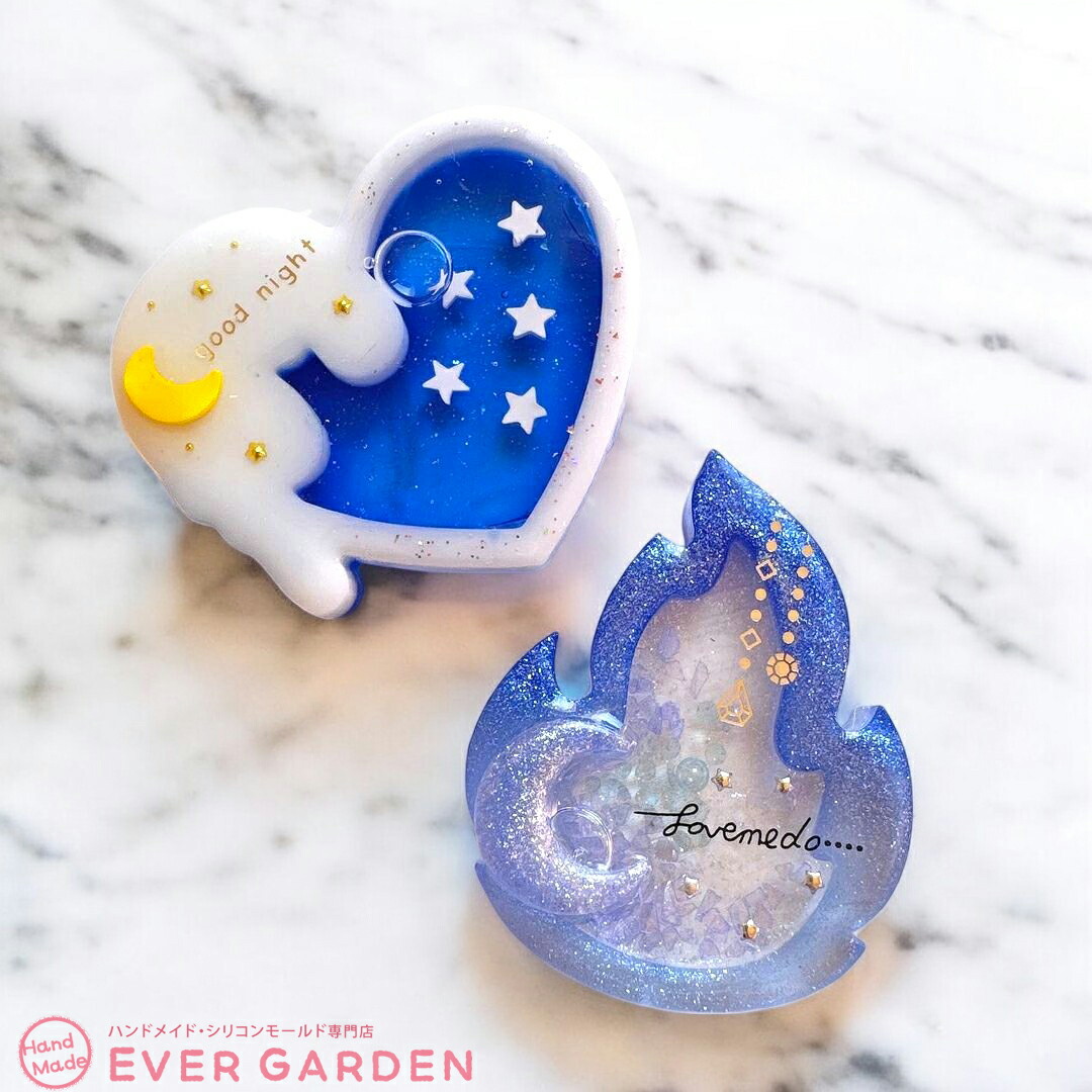 シリコンモールド シャカシャカ 肉球 ネコ ハート 炎 通し穴付き 2枚セット 猫 犬 ねこ にゃんこ レジン アクセサリー パーツ イヤリング