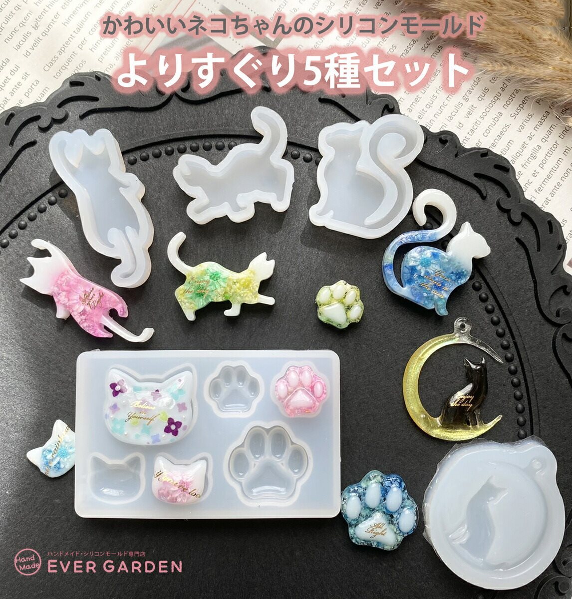 猫 ネコ シリコンモールド 5種類 レジン アクセサリー パーツ 作成 ネックレス イヤリング ピアス ペンダント キーホルダー