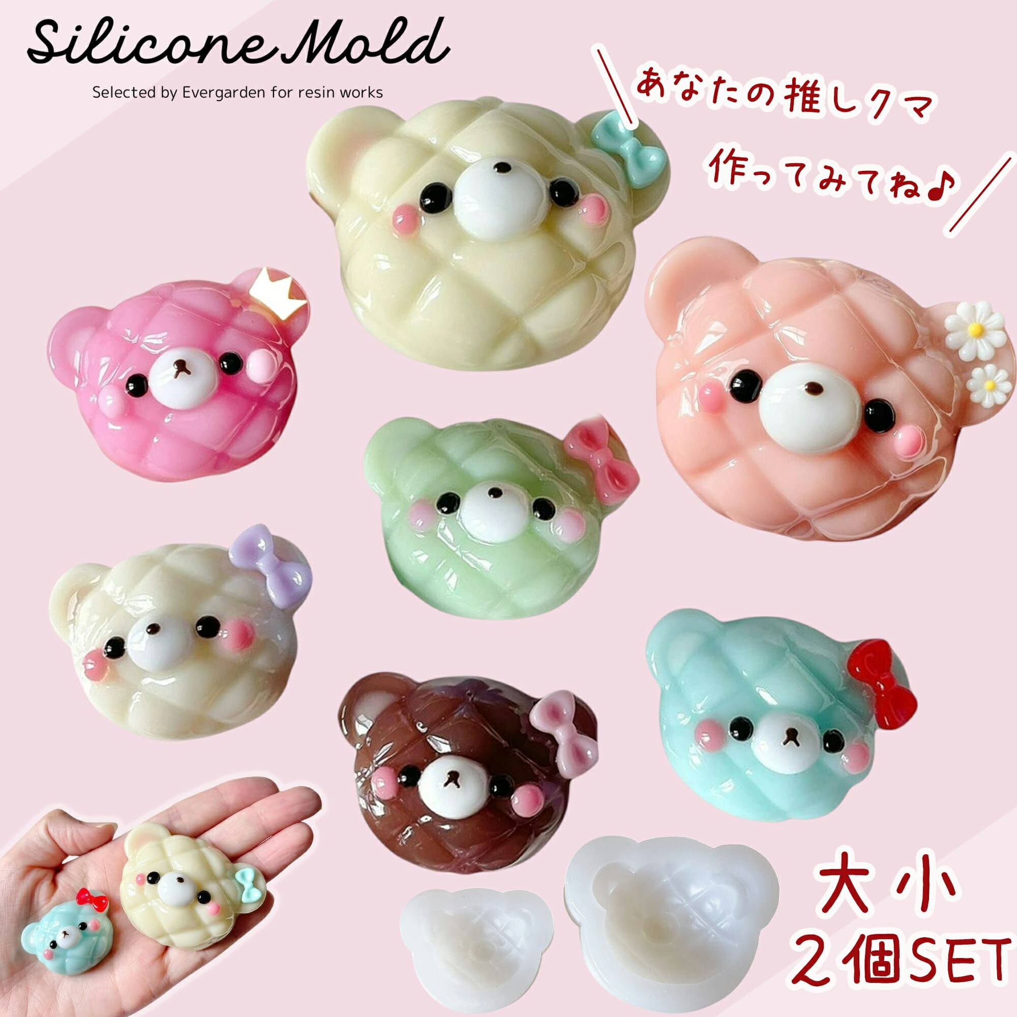 シリコンモールド クマ メロンパン 2個セット スイーツ ミニチュアスイーツ ドーナツ トースト クマ ケーキ レジン アクセサリー キーホルダー