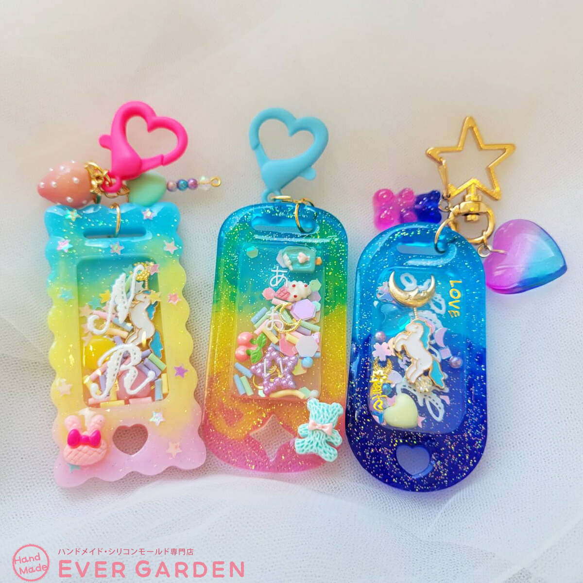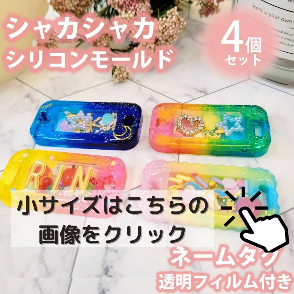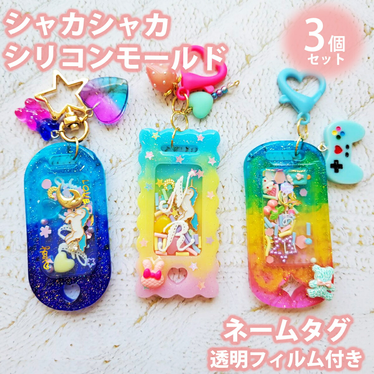シャカシャカ ネームタグ シリコンモールド レジン 大 3個セット プラ板付き 4点セット 穴あきタイプ キーホルダー バックチャーム アクセサリー