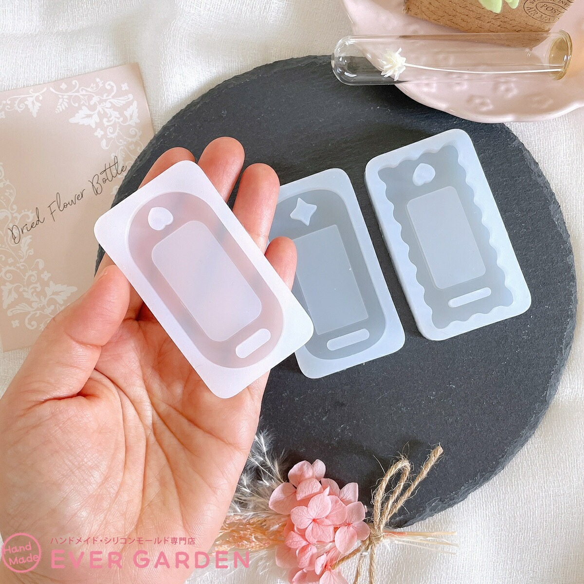 シャカシャカのネームタグが作れるシリコンモールドのセットです。モールド3種類とppシート1枚がセットになった4点セット♪ 穴あけ作業が不要な便利な穴あきタイプです。高品質な半透明のシリコンモールドです。丈夫で柔らかく取り出しやすく、初心者の方でも簡単に取り外せます、