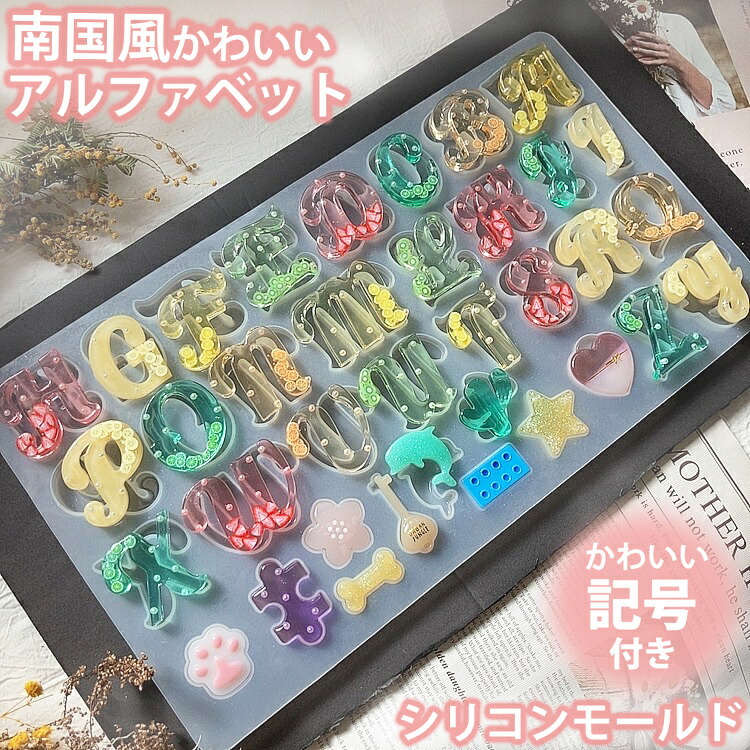 | 商品について | ハワイ風のポップでかわいいデザインのアルファベットが作れるシリコンモールドです。イニシャルキーホルダーやバックチャーム作りに最適です。 イルカやブロック、パズル、鍵、桜、肉球などのかわいい形も揃っていて、アレンジが沢山思いつく楽しいモールドです♪ 柔らかく丈夫な良質なので、取り出しやすく使いやすいモールドです。UVレジン、エポキシ樹脂、樹脂粘土などにご利用いただけます。 |