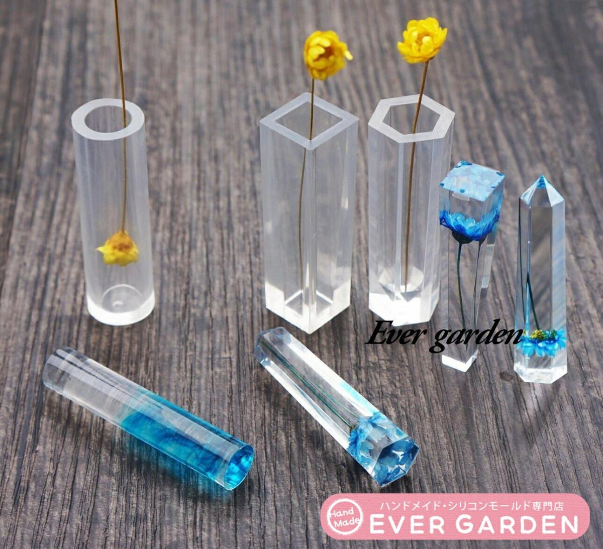 レジン筒型 3個セット 丸 四角 5角形 ペンタゴン シリコンモールド ネックレス アクセサリー パーツ 作成 シリコン