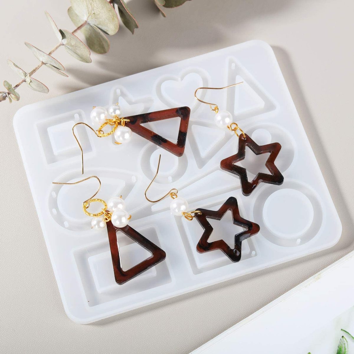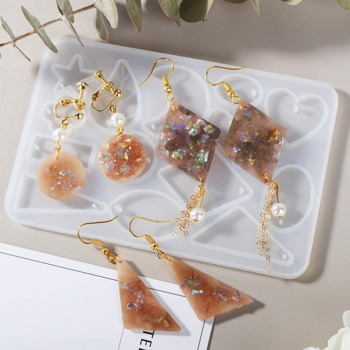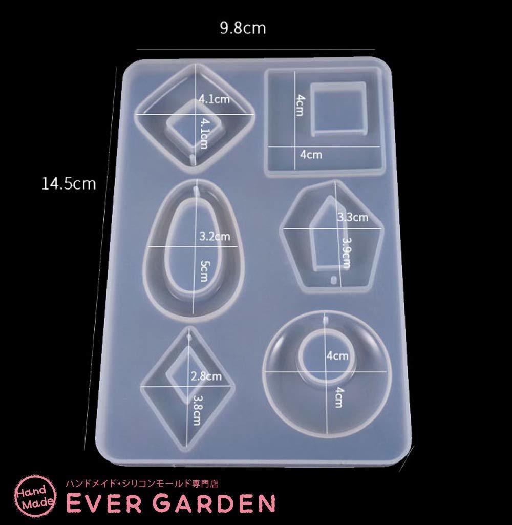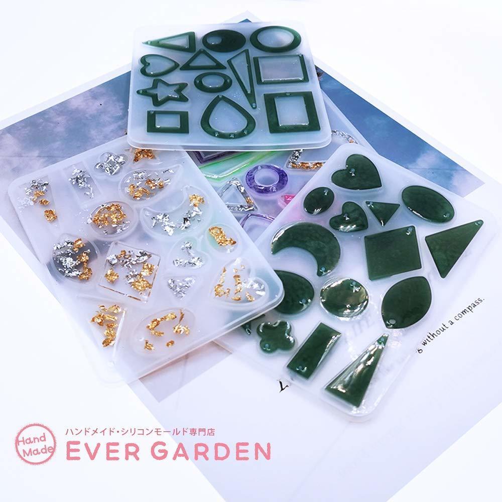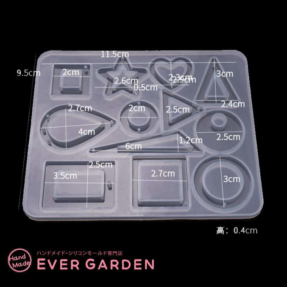 UVレジン、エポキシ樹脂、樹脂粘土などに ご利用いただけるシリコンモールドです。穴あきタイプでハート・星・丸・しずく・楕円・四角・三角など33種類のアクセサリーパーツが制作可能です。