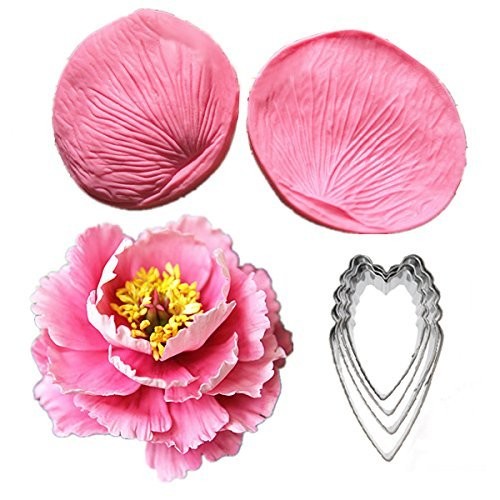 シリコンの型2枚(表・裏)と花びらの形抜き取れるカッター(4サイズ)の合計6点セットです。