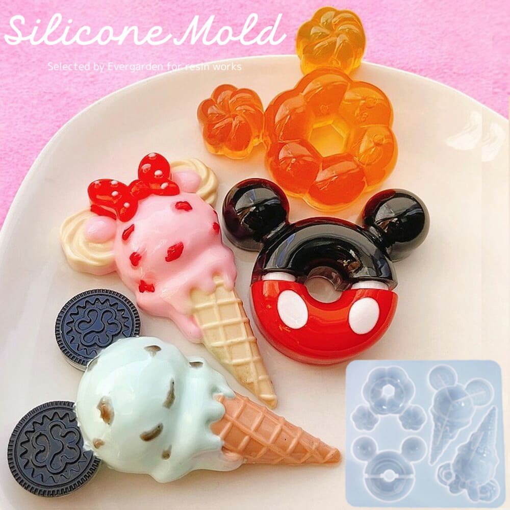 シリコンモールド ネズミ モチーフ マウス アイスモチーフ ドーナツ スイーツ アイスクリーム シャカシャカ シェイカーモールド レジン アクセサリ