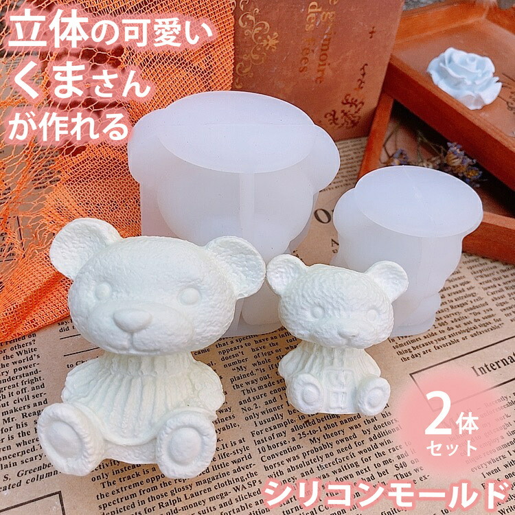 【2体セット】くま シリコンモールド 立体 大小 2個セット レジン アロマストーン 石膏 手作り 石鹸 キャンドル 樹脂 粘土 オルゴナイト バスボム シリコン モールド 型 抜き型 クマ 熊 |