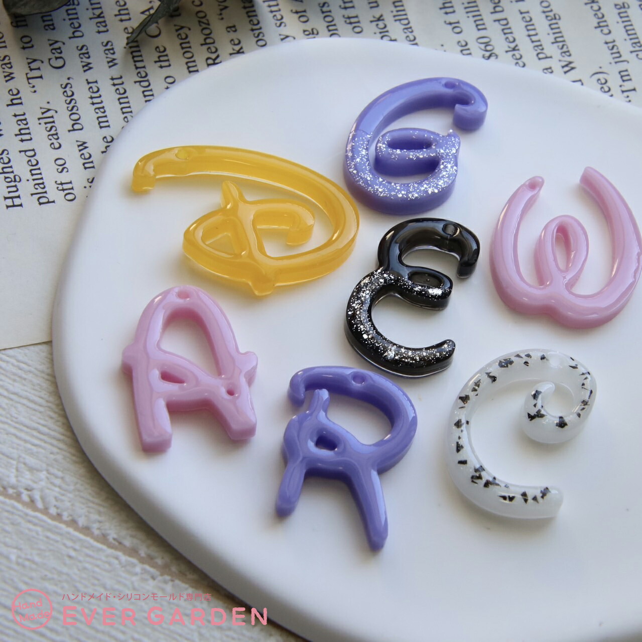 シリコンモールド 穴あきタイプ2枚セット 夢の国のアルファベット アルファベット大文字 アルファベット レジン アクセサリー イヤリング ピアス