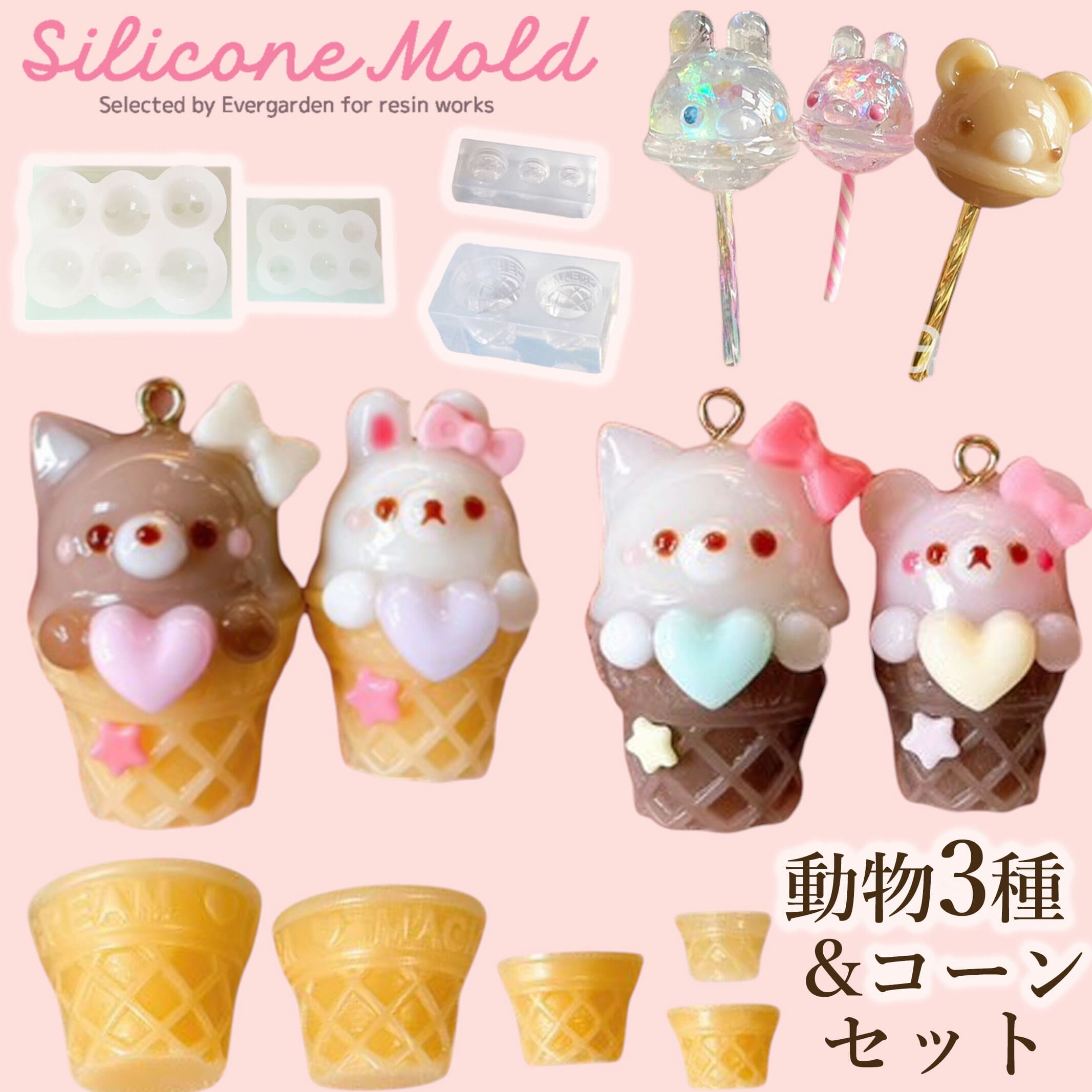 Evergarden シリコンモールド スイーツ 動物 コーン 動物コーンセット ミニチュアスイーツ アイス クリーム シャカシャカ シェイカー
