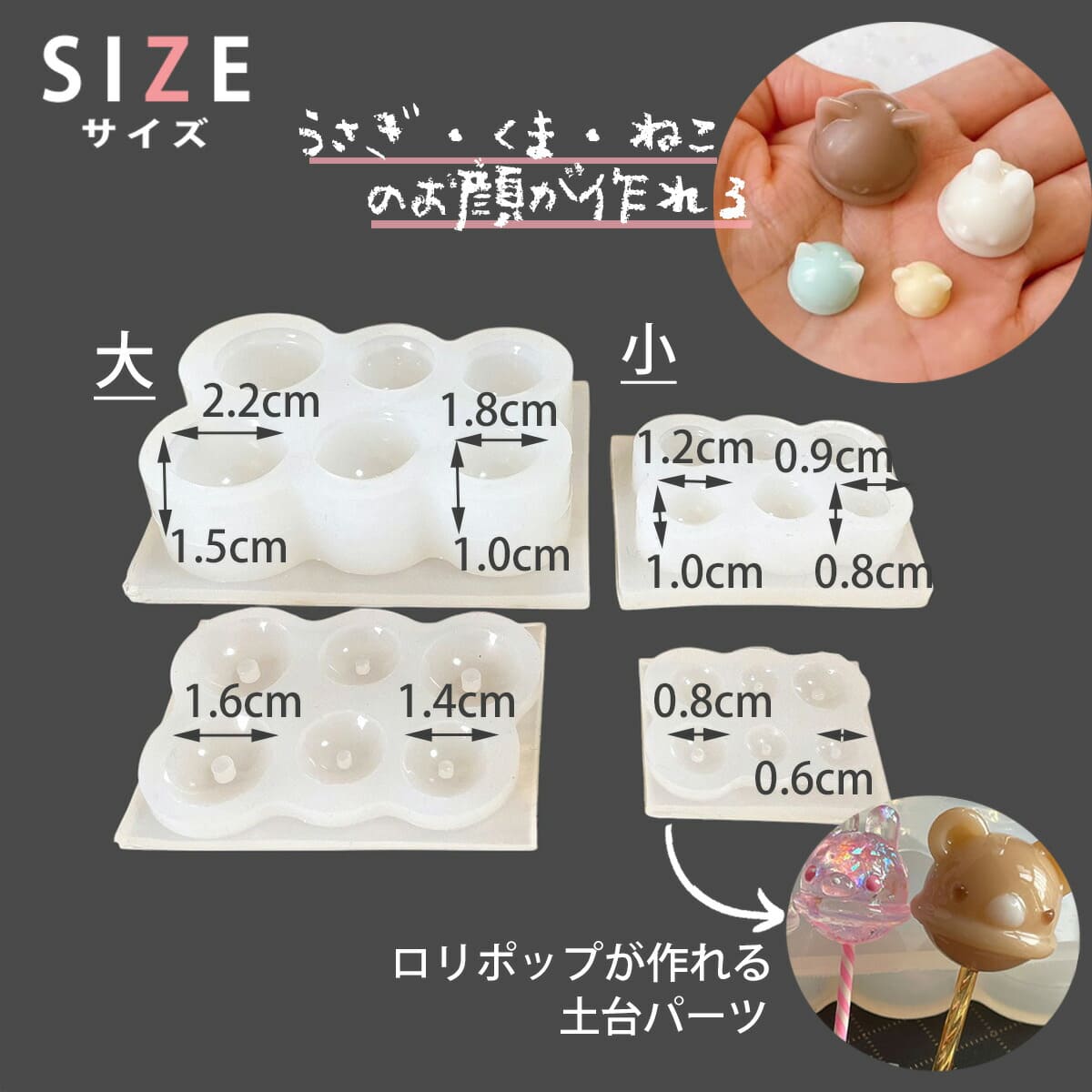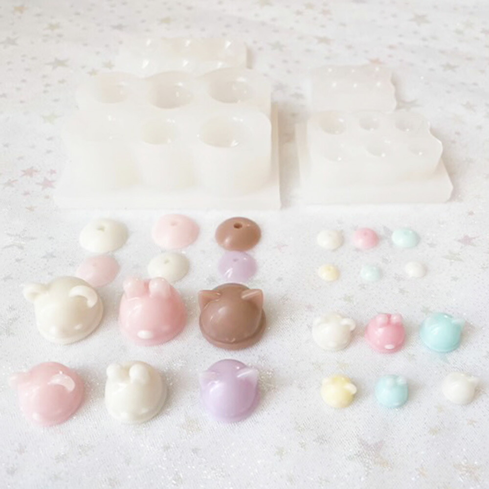動物はねこ、ウサギ、クマの3種類が2サイズずつ作れます♪ アレンジが楽しめて、使い道・アイデアも広がるモールドです。