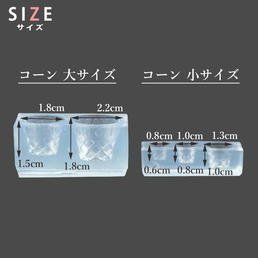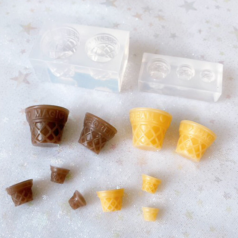 リアルでかわいいアイスのコーンがと動物のお顔で可愛い過ぎるミニチュアスイーツが作れるシリコンモールド6個セットです。 コーンは5つのサイズが作れます。