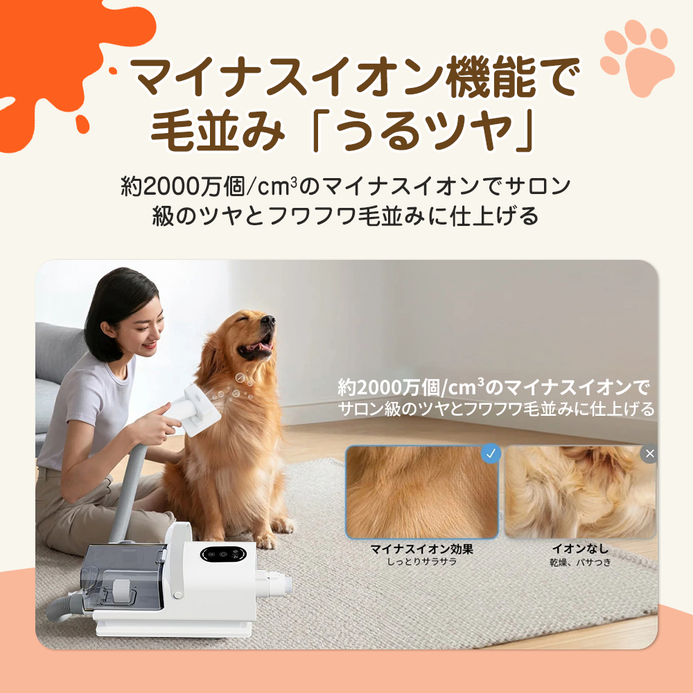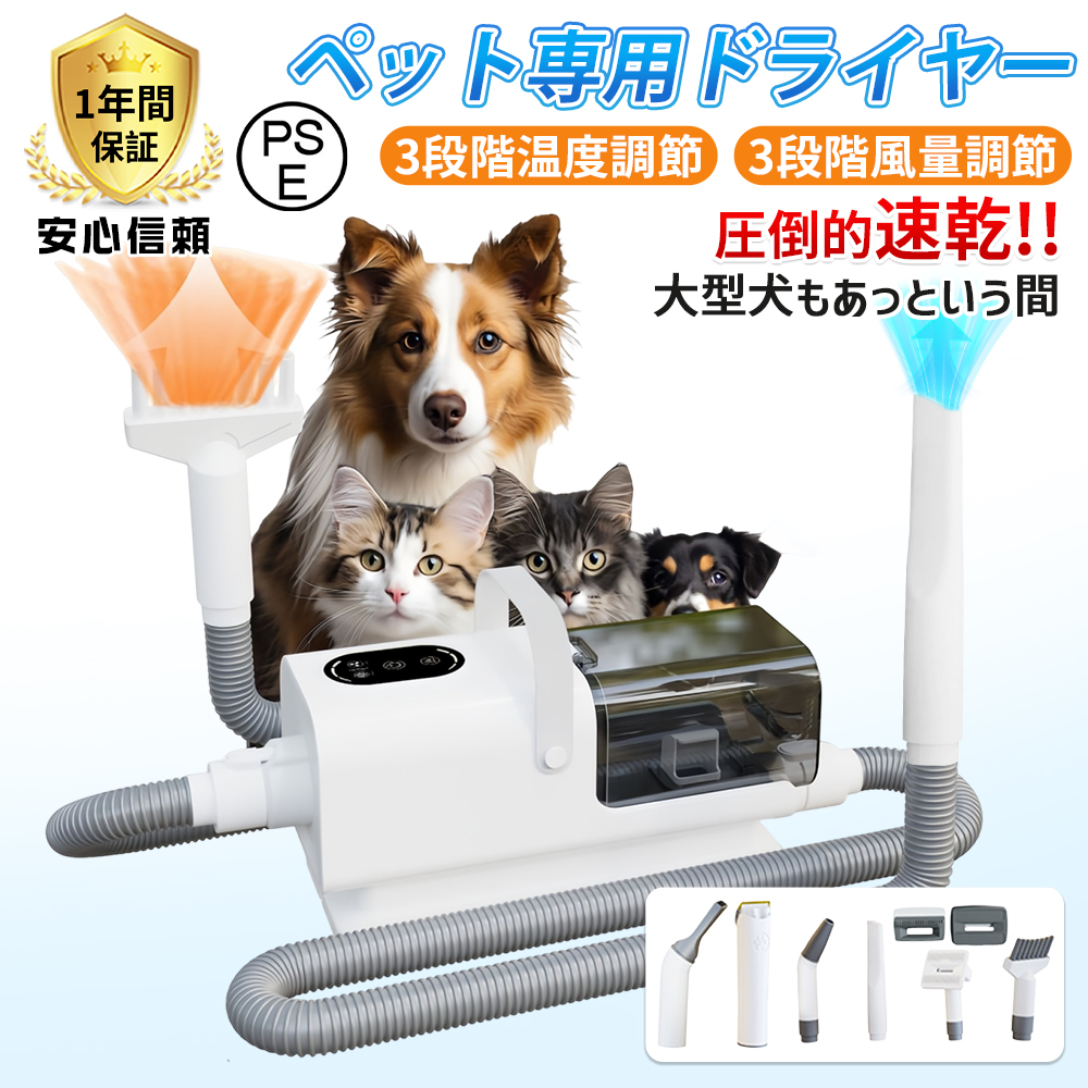 ペットドライヤー 電動バリカン 掃除機 ヘア乾燥機 犬用 猫 静音 速乾 大風量 静電気除去 一体型収納 マイナスイオン 乾燥機 送風機 風量温度調整 PSE認証済
