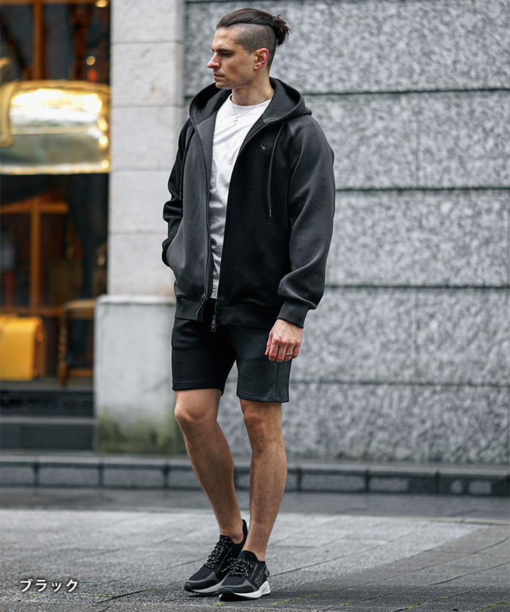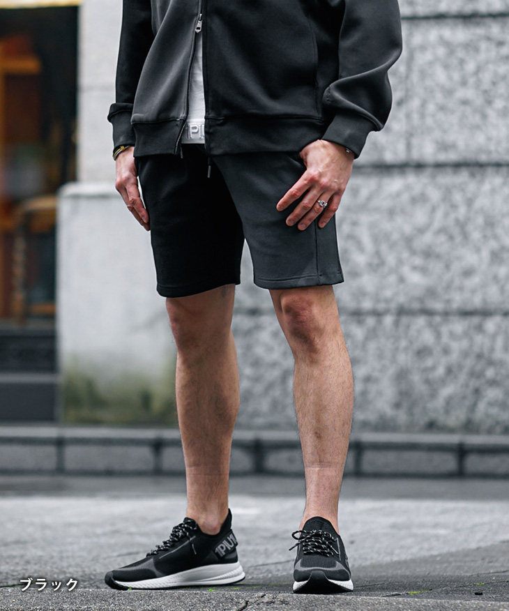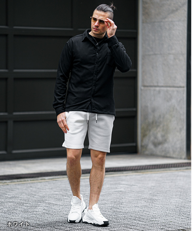 [Lサイズ]を着用しましたやや余裕のあるサイズ感でした。丈は膝上指3本あたり、ウエストは拳一つ半以上の余裕がありました。太もも周りの余裕はちょうど良く、野暮ったさはありません。リラックス感を楽しみたい方はLサイズ、オーバーサイズが苦手な方にはMサイズをおすすめします。