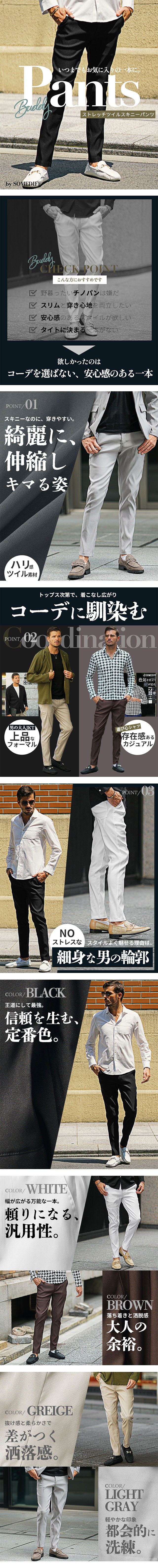 毎朝の“何穿こう?”に迷わない。上品さと快適さを備えた、【前開きツイルスキニーパンツ】。
