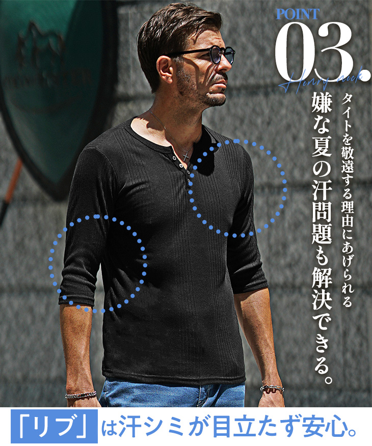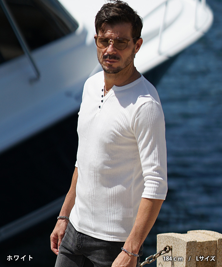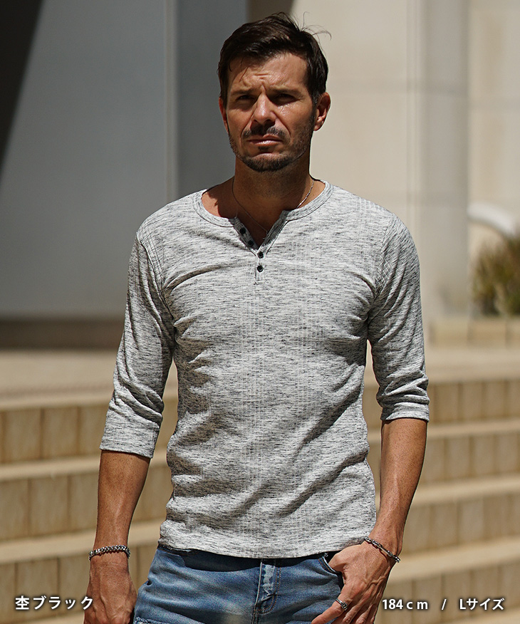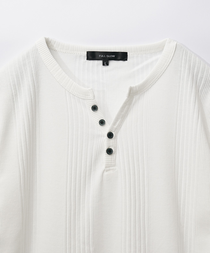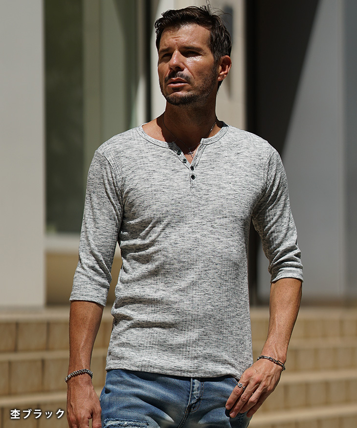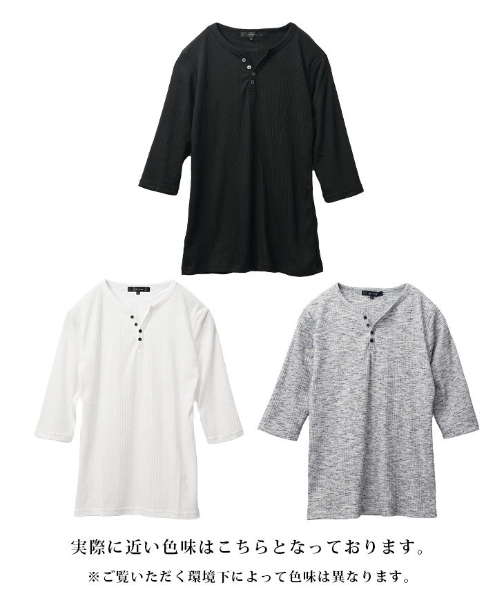 【テレコヘンリーネック7分袖Tシャツ】