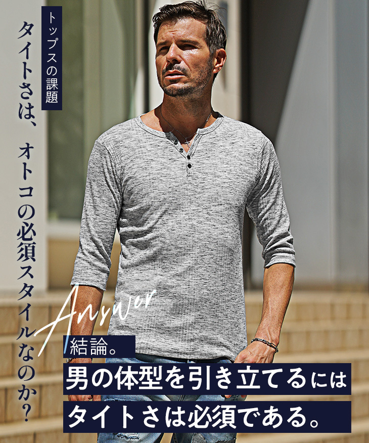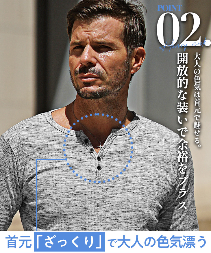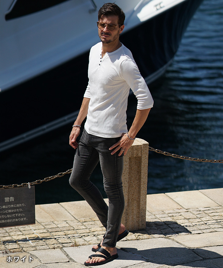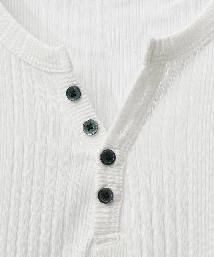 細身シルエットのヘンリーネックカットソー。