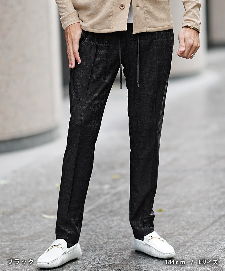ランダム千鳥柄ジャガードスラックス