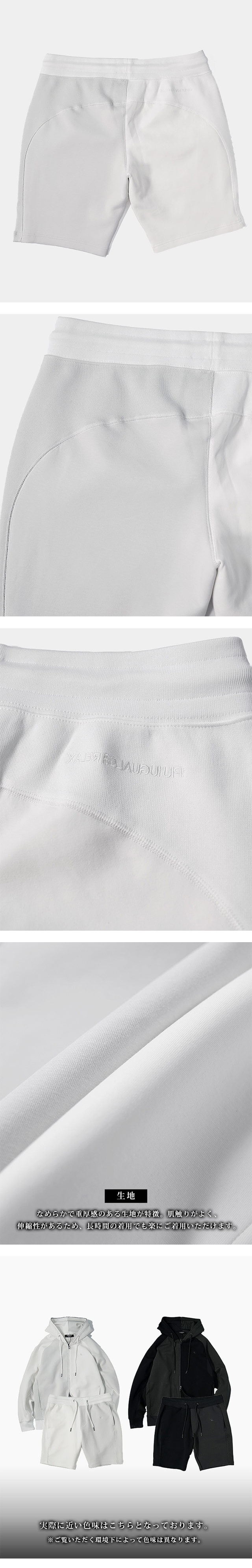[Lサイズ]を着用しましたやや余裕のあるサイズ感でした。パーカーのやや余裕のあるサイズ感でした。着丈はお尻が隠れ、袖丈は手の甲にかかるあたりです。フロントZIPを閉めてもかなり余裕があります。パンツの丈は膝上指3本あたり、ウエストは拳一つ半以上の余裕がありました。太もも周りの余裕はちょうど良く、野暮ったさはありません。リラックス感を楽しみたい方はLサイズ、オーバーサイズが苦手な方にはMサイズをおすすめします。