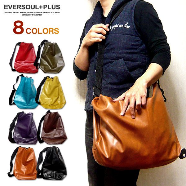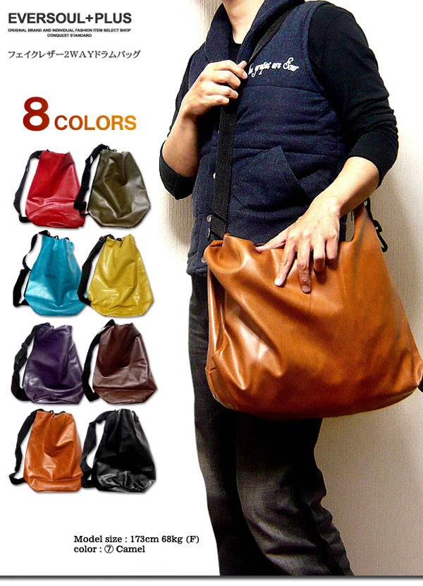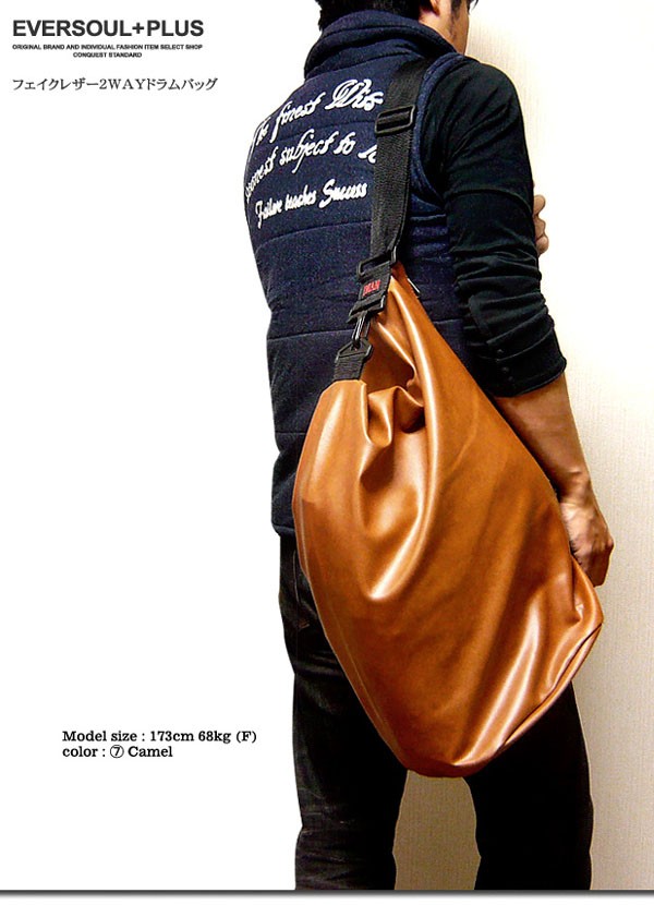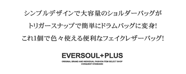 【EVERSOUL+PLUS SELECT:フェイクレザー2WAYドラムバッグ(ショルダーバッグ)】