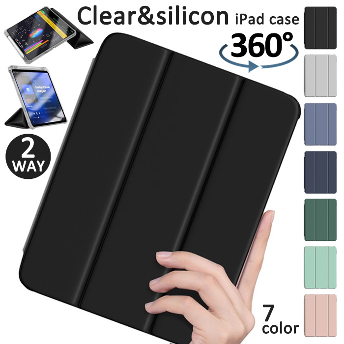iPadケース 手帳型 背面クリア クリア スタンド 黒 ネイビー iPad 第9世代 第10世代 Air6 Air5 Air6 mini7 mini6 Air mini Air Pro 第7世代 第8世代 アイパット