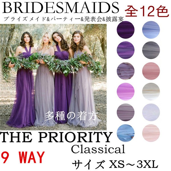 売れ筋 9wayドレス ウェディングドレス 12color 花嫁の介添えドレス 編み上げ ロングドレス プリンセスドレス 結婚式 ブライズメイド XS/S/M/L/XL/2XL/3XL