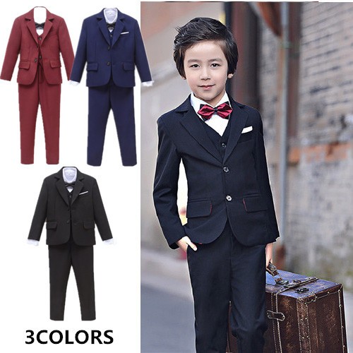 90cm~170cm卒業式 入学式 子供フォーマル 黒 無地 4点セット 通学制服 子供服 結婚式 発表会 制服 スーツ 男の子 タキシードキッズ 七五三 ダークブルー ブラック ワインレッド 9サイズ フォーマルスーツ 男の子 フォーマル シャツ ズボン 蝶ネクタイ ベスト dt372c0c0c0