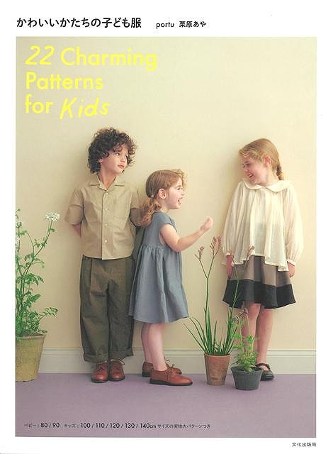 タックやギャザー、見返しでかわいいかたちに仕立てる子ども服。丈や布地を変えて男の子も女の子も楽しめる22点。80、90cmのベビー服、100〜140cmのキッズ服の実物大型紙つき。