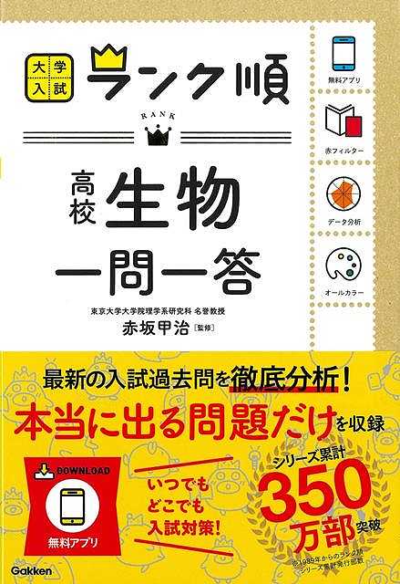 最新入試問題データを徹底分析した、生物一問一答の決定版。重要頻度をランク順で明示し、「出る」項目を効率よく覚えられる。また、本書の内容に対応した「アプリ」が無料で利用できるので、覚えた用語をいつでもどこでも手軽に復習することができる。