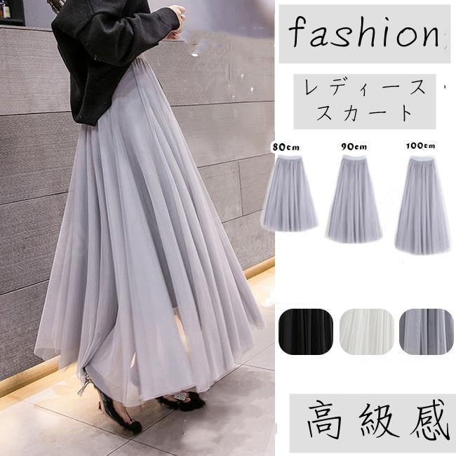 スカート ロングスカート お花見 レディース チュールスカート ひざ丈 マキシスカート プリーツスカート ウエストゴム 柔らかい ボトムス 大きいサイズ