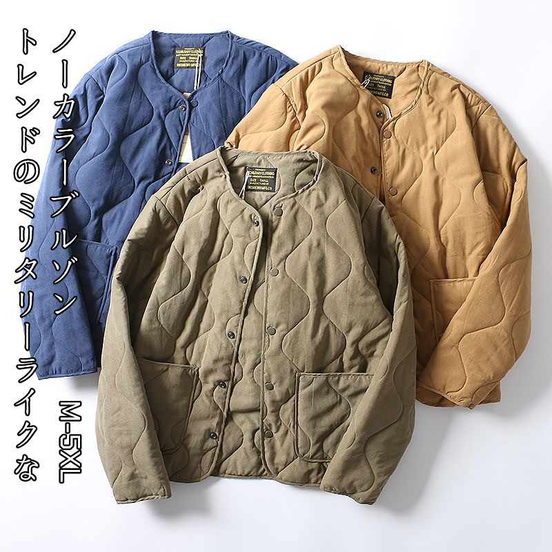 ブルゾン キルティング ジャケッ ノーカラーキルティングジャケット キルティングライナー 中綿 メンズ ノーカラージャケット 長袖 ライナージャケット