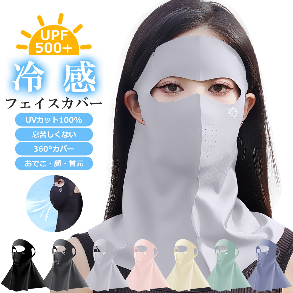 このUVカットフェイスカバーは、UPF500+・UVカット率100%の高基準を誇り、有害な紫外線を強力にブロック。