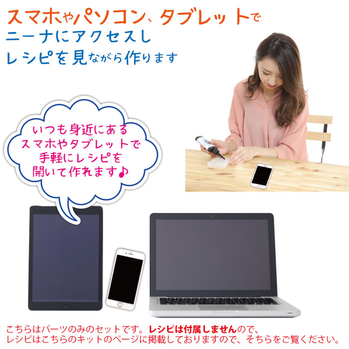 レシピは、商品ページに掲載してありますので、パスコンやスマホでレシピを見ながら気軽に作成できます。