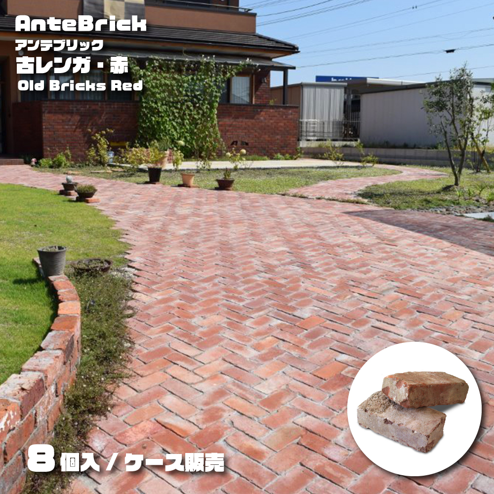 【ヴィンテージ煉瓦 アンテブリック 001 古レンガ赤 8個セット】 赤色 レッド エクステリア お庭 アプローチ おしゃれ レトロ 【メーカー直送品・代引不可】