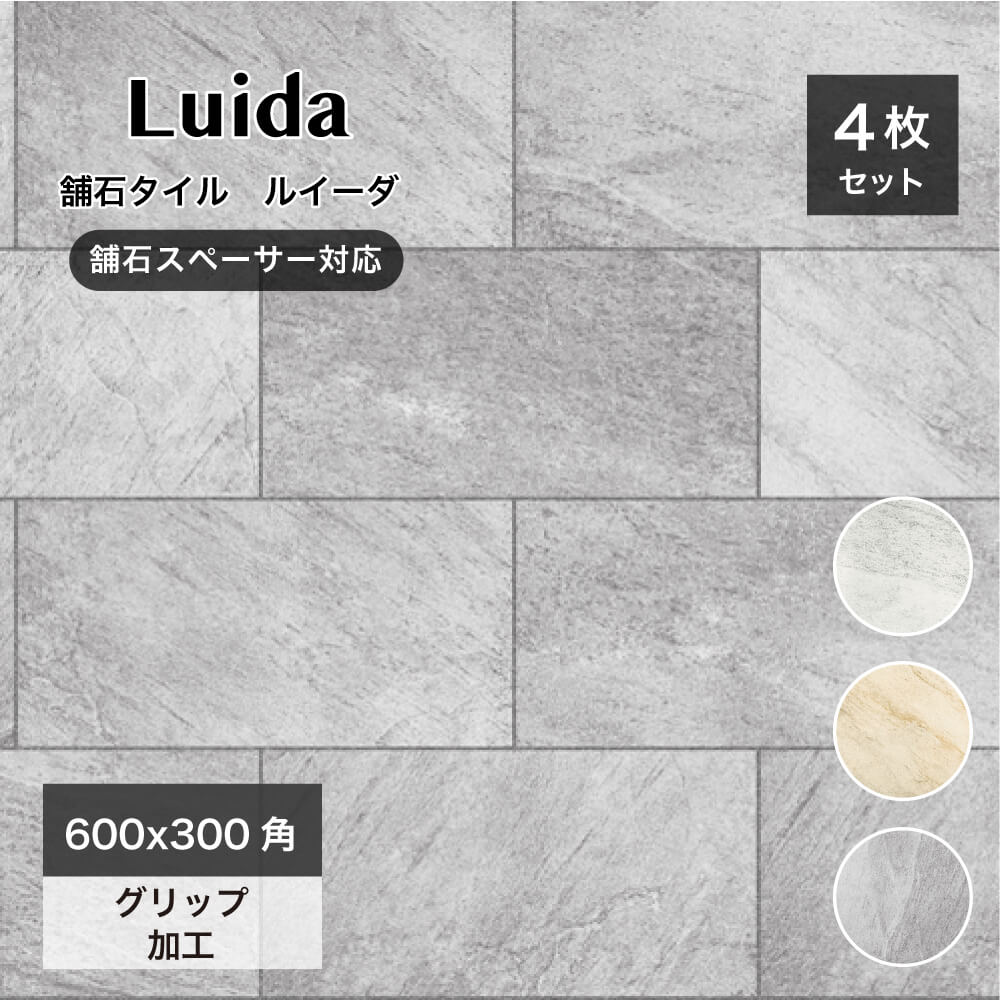 【舗石タイル ルイーダ 600x300角 全3色 ケース販売(4枚入)】床タイル 600×300mm 長方形 厚手 庭 敷石 置くだけ 雑草対策 防草 車両・重歩行可 アプローチ