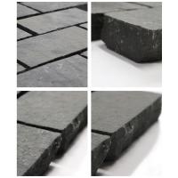 玄武岩を使用したシックな色合いが人気の「ペイピングストーン ブラック」。お客様からのご要望にお応えして、同素材で新たに3つのサイズが仲間入り。施工場所に合わせて一つのサイズでまとめて施工するも良し、他サイズをミックスして個性を出すも良し、使用の幅がさらに広がりました。(※こちらのページは「2010」のサイズとなります。)