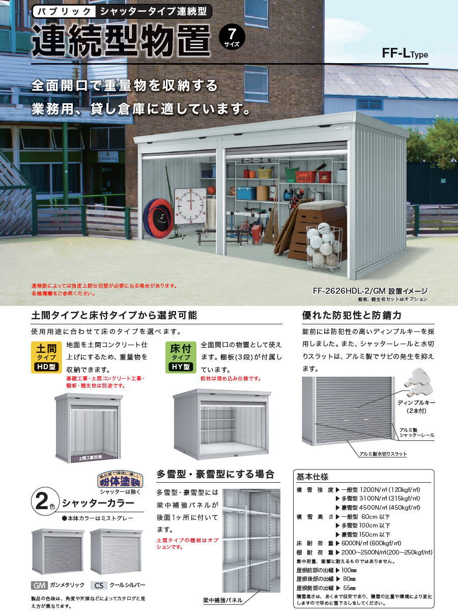 商品名 | イナバ物置 稲葉製作所 シャッタータイプ連続型 FF-3030HDL 土間タイプ 追加棟 多雪型 |