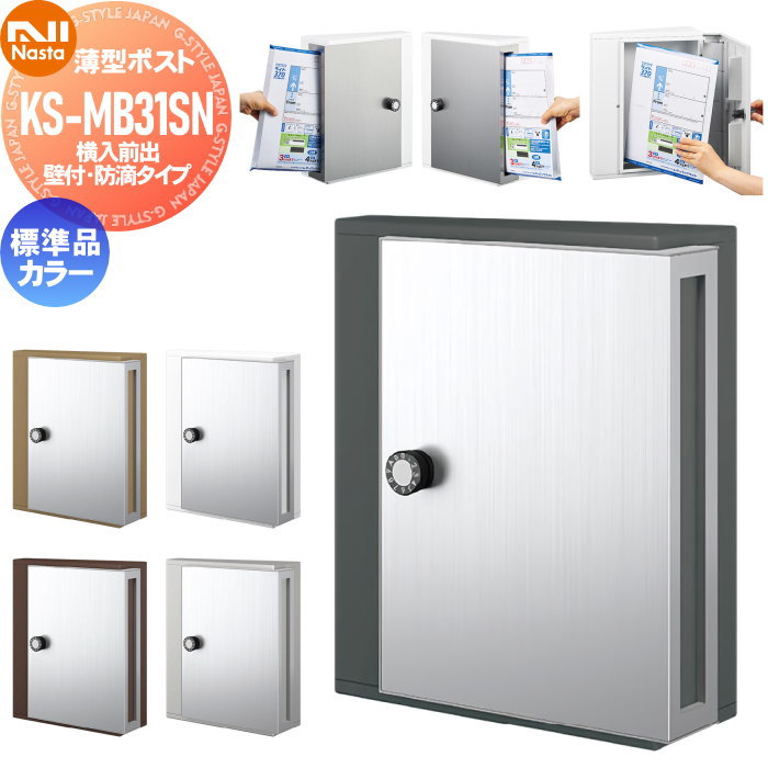 NASTA ナスタ 薄型ポスト KS-MB31SN-L 標準品 通常カラー 横入前出 防滴タイプ 19,000円 | NASTA ナスタ 薄型ポスト KS-MB31SN-L 受注生産品 カラー 横入前出 防滴タイプ 22,800円 |