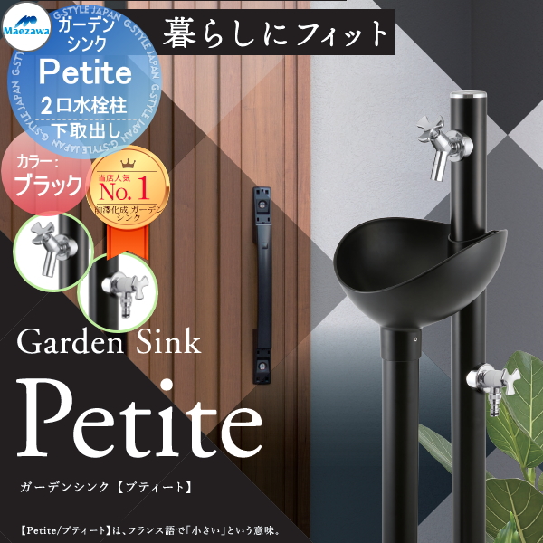 商品名 | MELS(メルズ) ガーデンシンク プティート 2口水栓タイプ ※蛇口セット 画像イメージ:ブラック Petite 下取り出しタイプ GS-PT320WR BK×BK(14689) 丸型アルミ水栓柱 立水栓セット ガーデンパン 水栓柱 前澤化成 マエザワおしゃれ かわいいガーデニング 庭まわり 屋外 水道 水廻り |